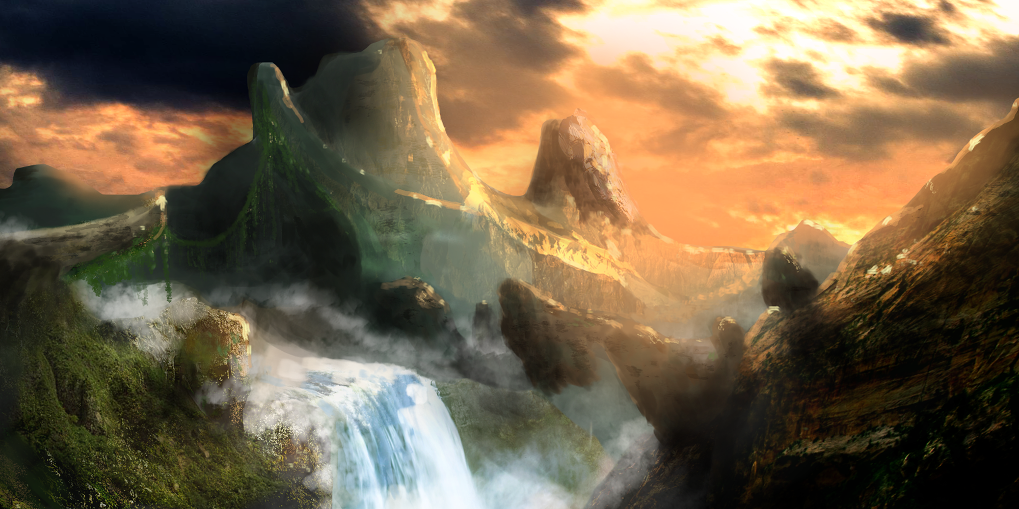 Pintura digitais feitas no Photoshop, utilizando técnicas como matte painting